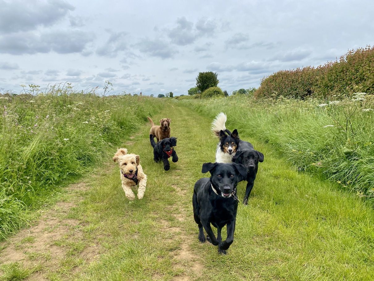 Lots of lovely dogs enjoying amazing countryside walks with Country Canine Company.